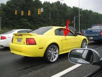 It says “jazzy”, either her name or describing her rims? (It is a yellow Ford Mustang if you can not tell.)
