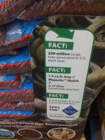What should people do with all those scrap tires?  Put them outside their homes of course!  This bag of scrap tires was at Sams, cost $8.22 for 1.5 cu.ft. (2.17 tires) and seems like a great idea for “natural areas”.